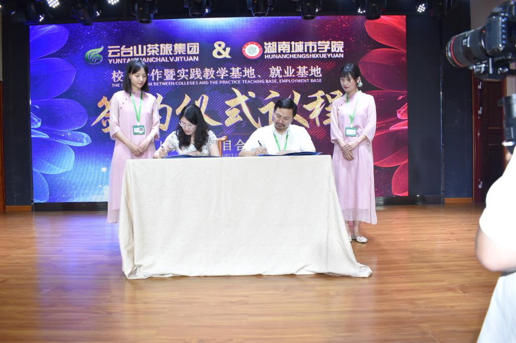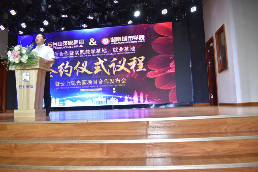 2020年7月11日,华体会在线(中国)唯一官方网站管理学院与湖南云台茶旅集团文化有限公司(以下简称”云台山茶旅集团”)合作签约挂牌仪式在安化云台山举行。出席签约仪式的有益阳市文化旅游广电体育局副局长张金龙、安化县委常委宣传部部长林英、安化县副县长谢疆等政府领导。