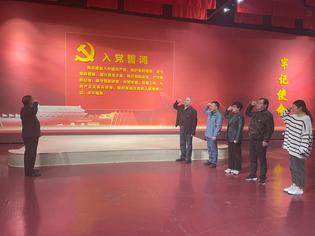 6名党员在红军长征根雕文化馆重温入党誓词