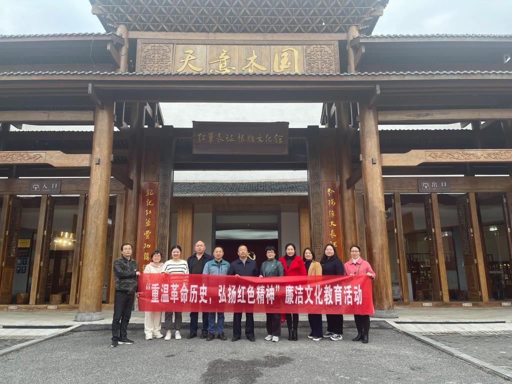 20221117日下午,资产处、采购与招投标管理中心、国际合作与交流中心三部门联合组织全体职工赴天意木国红军长征根雕文化馆开展“重温革命历史,弘扬红色精神”廉洁文化教育活动,党员们重温入党誓词。